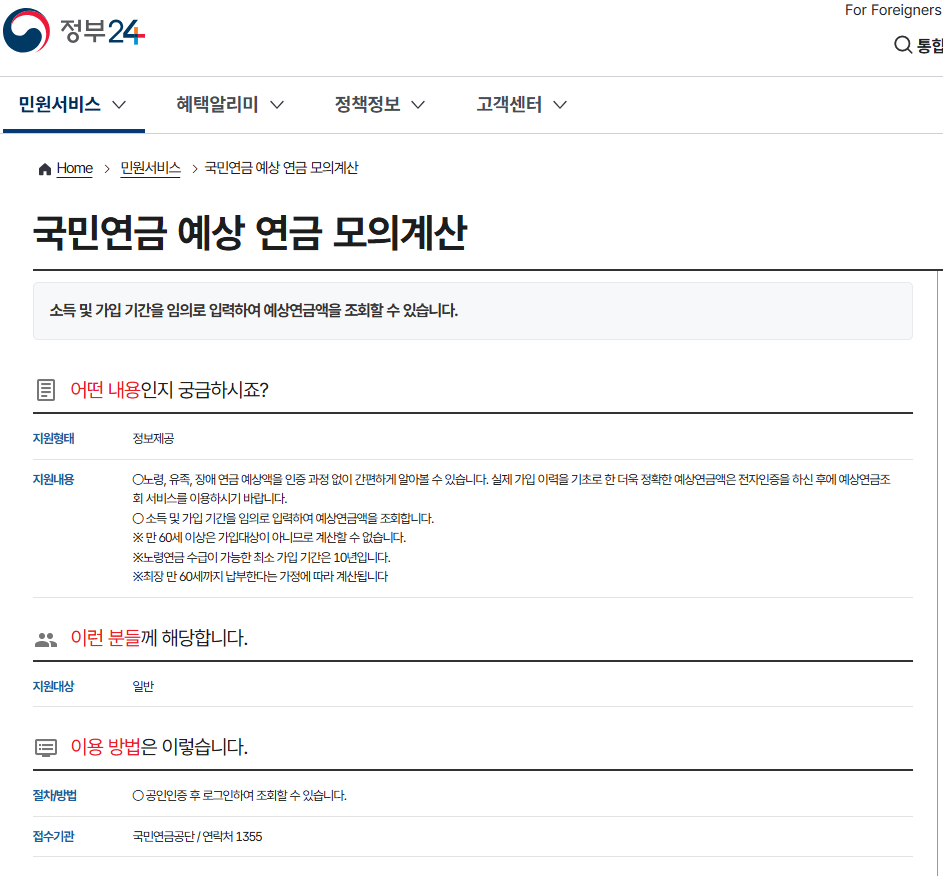 국민연금 예상 연금 모의계산 | 민원 안내 및 신청 | 정부24