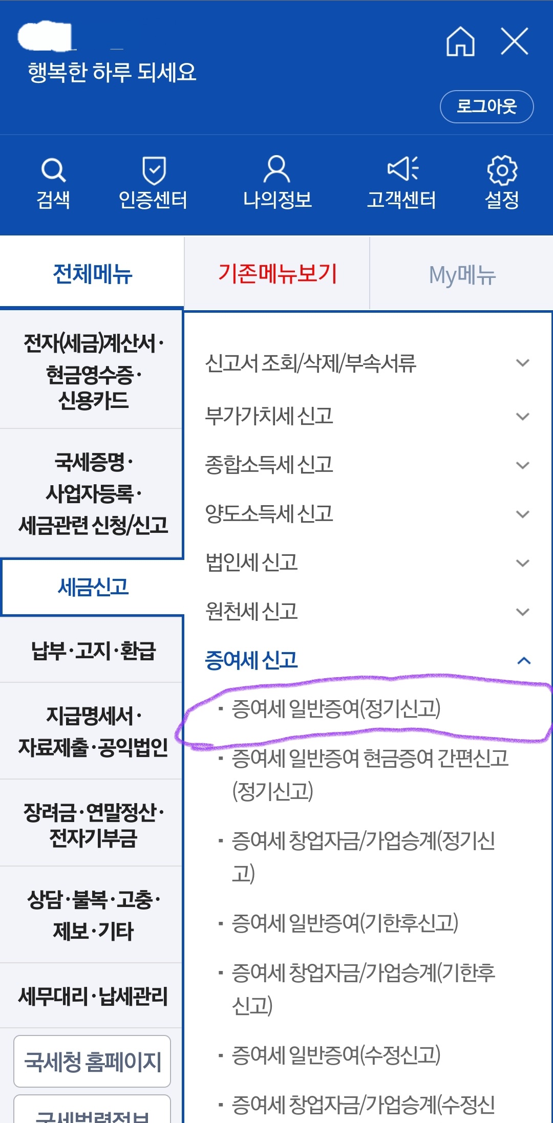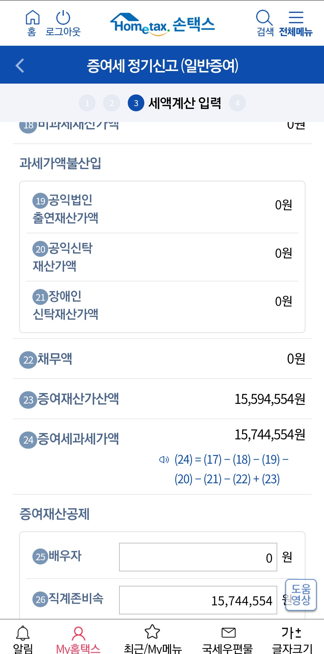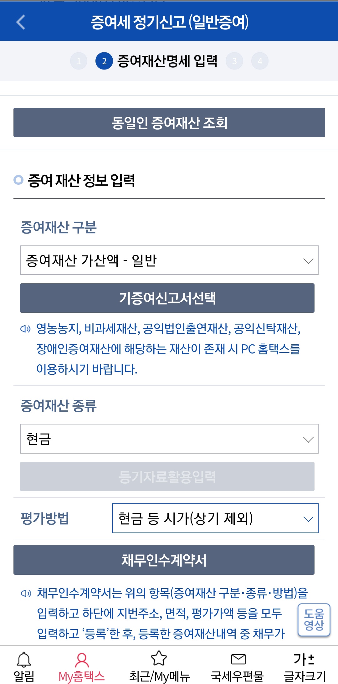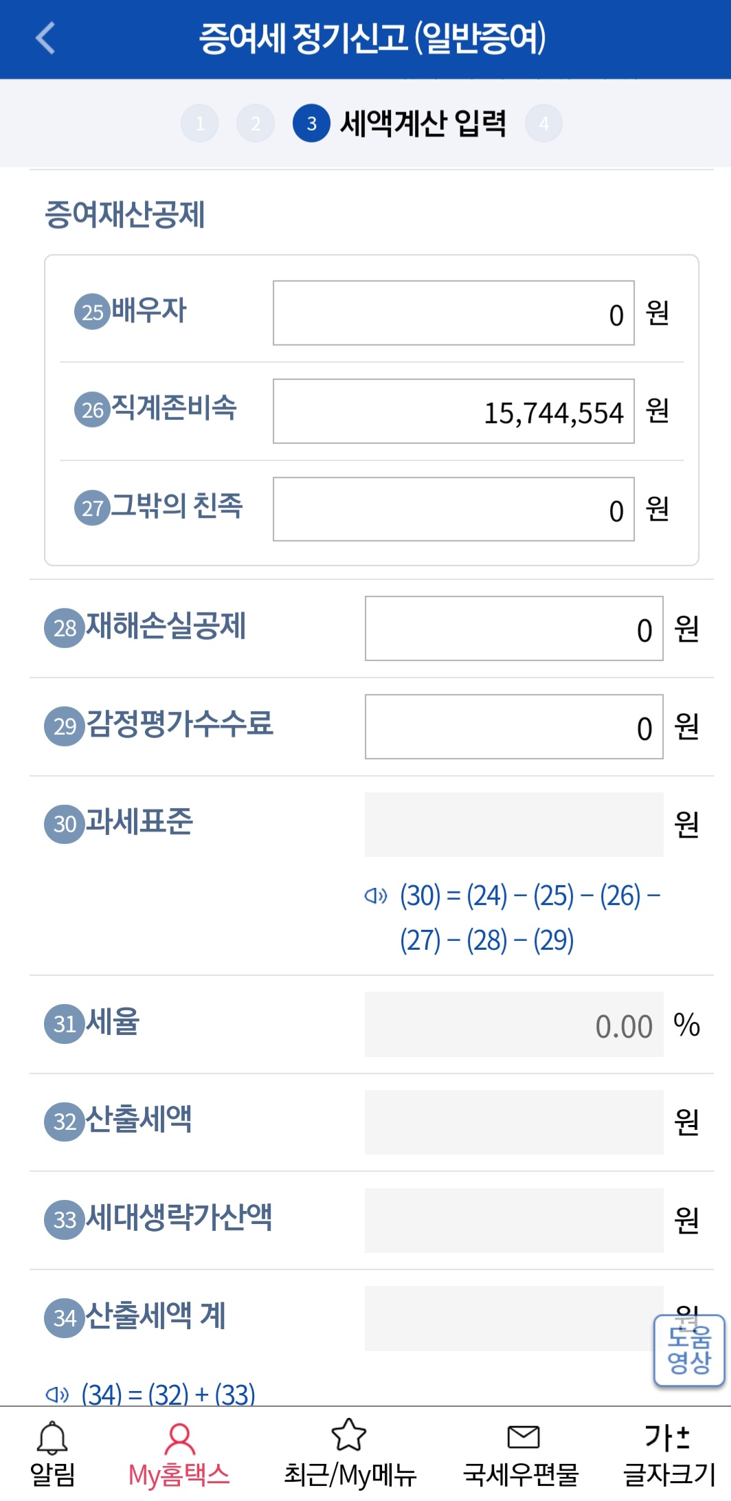3) 메뉴는 세금신고-증여세 신고입니다.