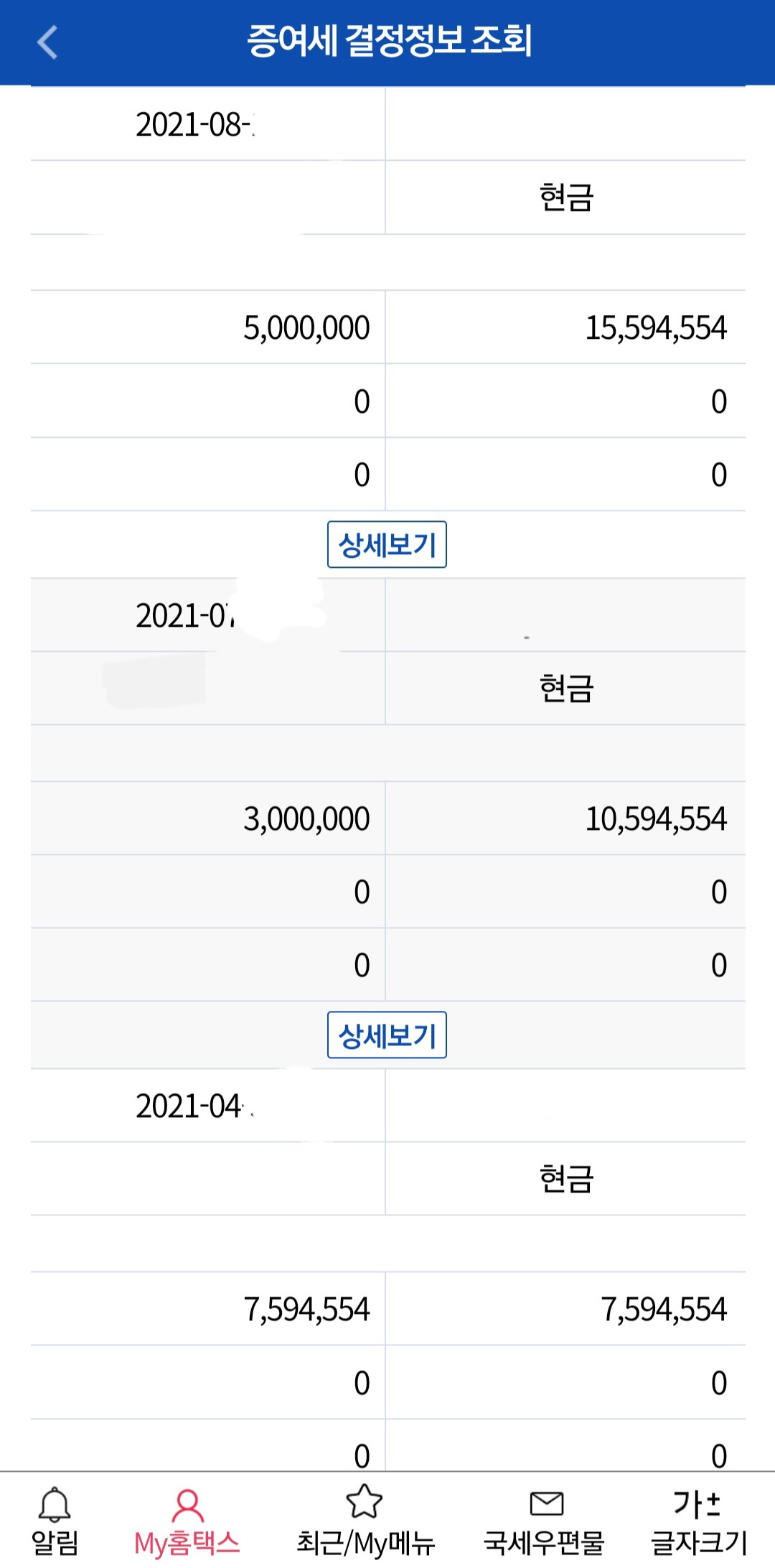 1) 기존 증여 한 내역이 있고, 그 금액이 천만원이 넘는다면 기존 증여내역을 반드시 합산하여 신고하여야합니다. 증여세 결정정보를 조회하고 신고한 내역을 하나씩 체크해줍니다. 저는 기신고내역이 3건이 있는데 신고내역이 한꺼건에 체크가 안 되어서 헤맸네요.