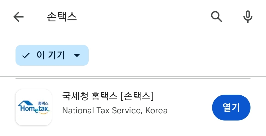 1) 홈택스 pc 또는 모바일 어플인 손택스를 다운 받습니다. 구글플레이스토어에서 손택스를 검색하시면 아래 어플이 나옵니다.