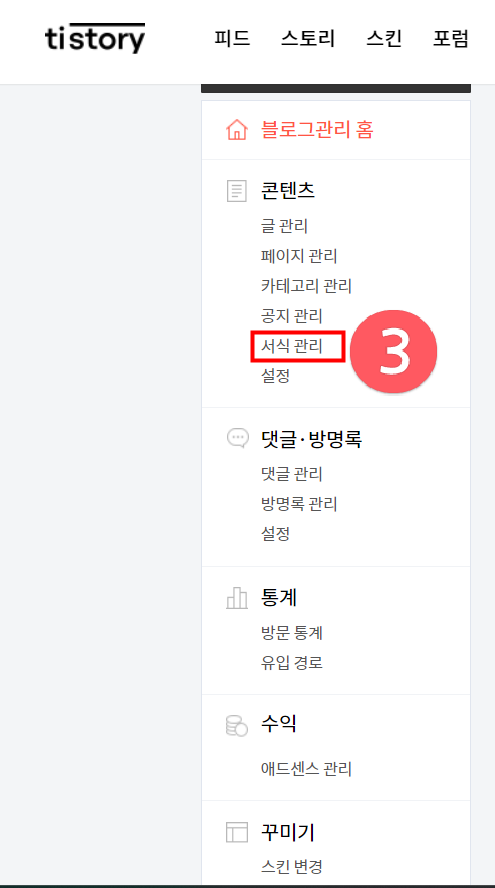 콘텐츠-서식관리 탭을 눌러줍니다.