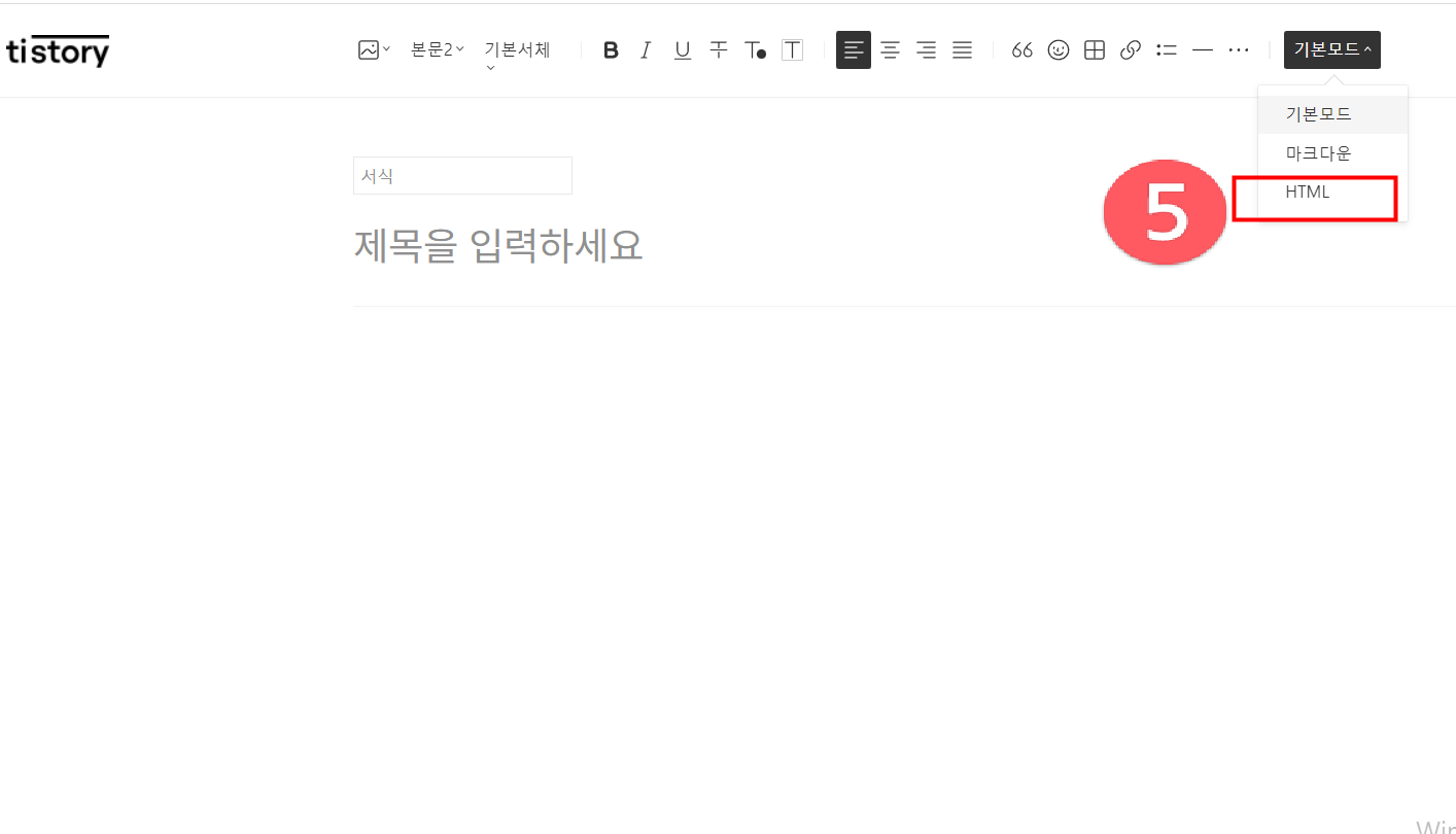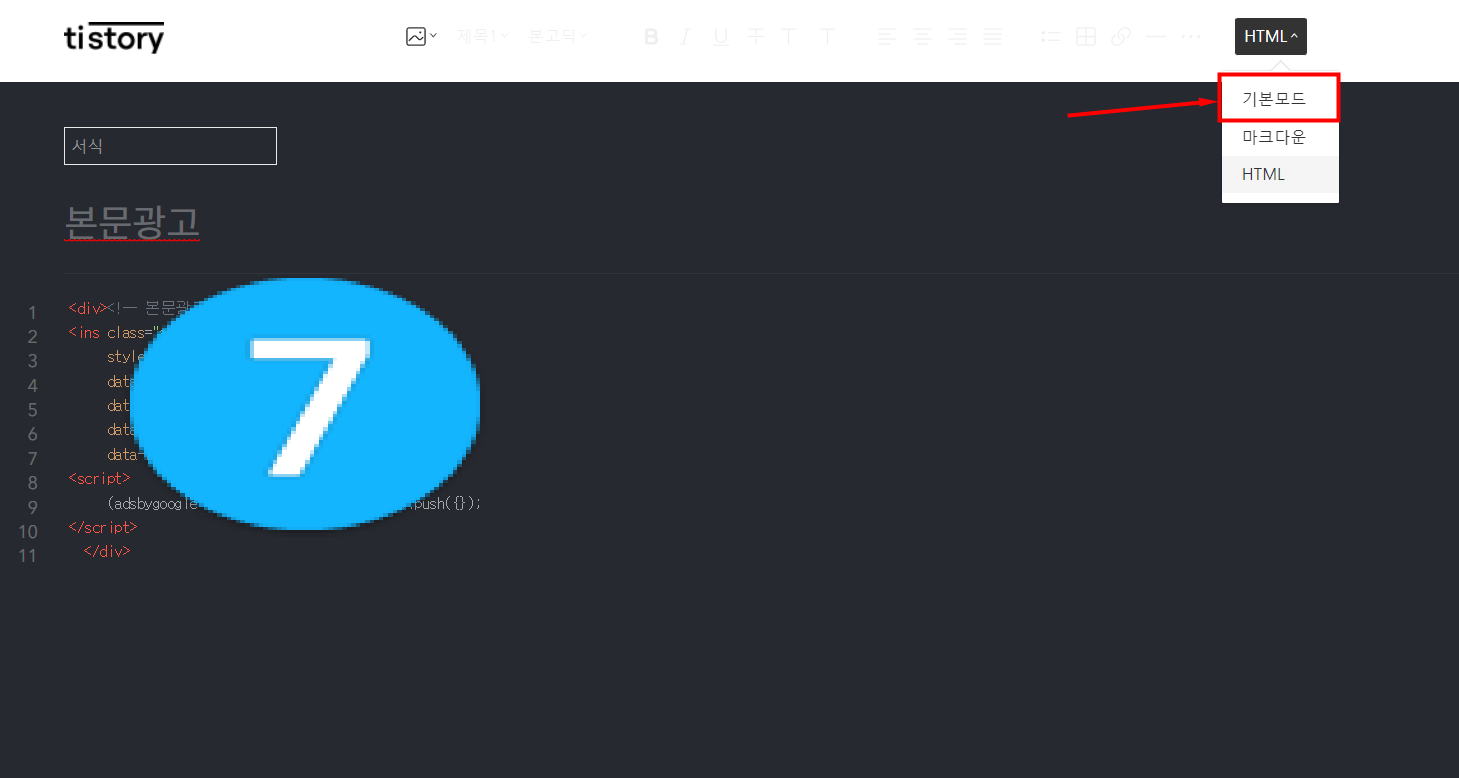 html모드를 눌러줍니다.