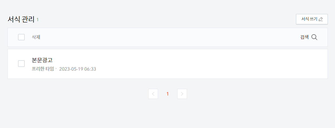 이렇게 서식이 저장된 것을 알 수 있습니다. 필요할 때 이 서식을 불러와서 글에 삽입을 시켜주면 됩니다. 이전에 작성해놓았던 글의 수정으로 들어가거나 새로운 글을 작성할 때 불러올 것입니다.
